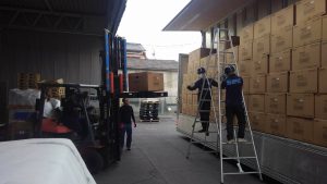 10tトラック4台分のトレーニングマシーンを入庫している様子です。