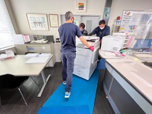 会社の入口の段差に木板や鉄板を挟んで安全に