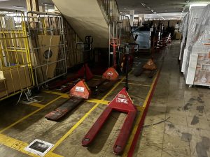 シャルダン商会の倉庫では お客様の商品を分かりやすく区別する為に、 このように場所を区分したり、目印を付けております。 こうすることによって、商品を適切な場所に整理する事が出来たり、 作業を効率的に行う事が出来ます。