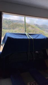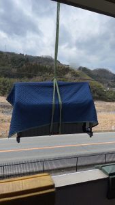 又、窓枠にも、緩衝材を設置し、ピアノを安全に窓から搬出しております。
