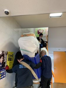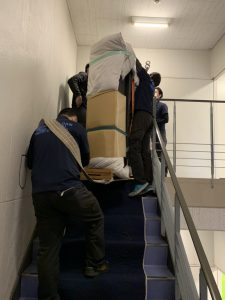 本日はグランドピアノ階段作業をご紹介いたします。 ある学校でピアノ・電子ピアノを大移動した様子です。