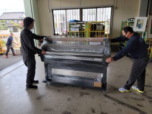 私たちシャルダン商会では、こちらの機械を組み立て・設置・そして起動確認(印刷)まで行います。