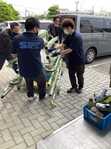 重たくて、かさばる、そしてよごさないように気を付けながら運んでおります。
