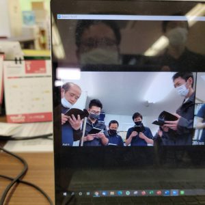 私たちは、毎朝7時から出勤時間に合わせて複数回の朝礼を行います。